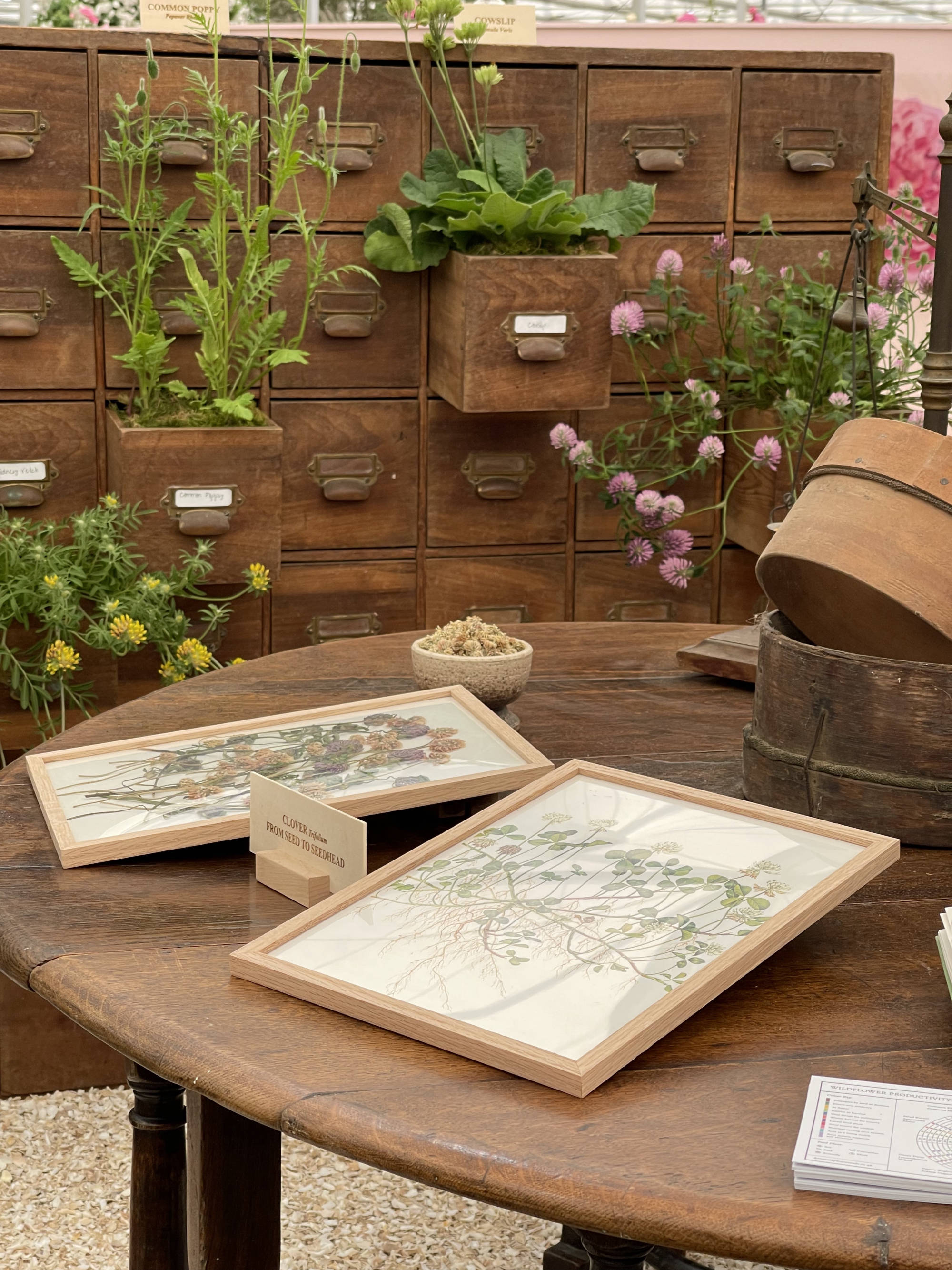 Displaying a kitchen garden container planting scheme, the display showed how to pair edimental and medicinal wildflowers with herbs and vegetables for a range of nutrient-rich edibles. The stand will also feature a set of antique seed drawers which were used in the family’s seed shop decades ago.
